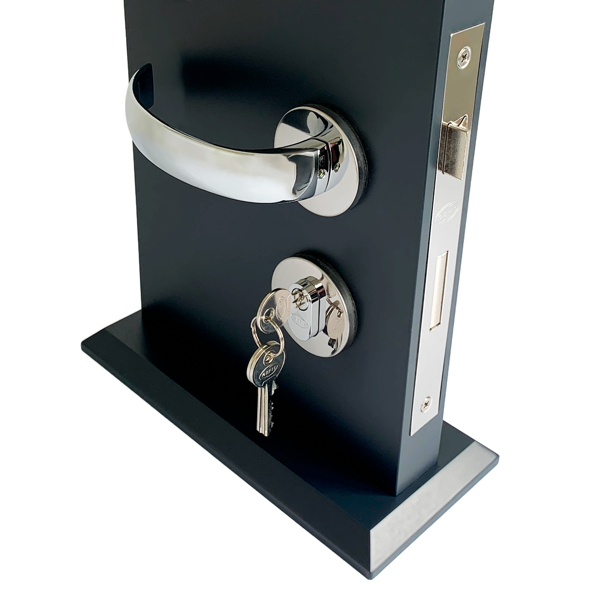 Seu design robusto com maçaneta curva, proporciona ergonomia e conforto no uso diário, e o acabamento cromado garante brilho e um toque de elegância à porta.